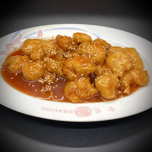 No MSG. Fresh shrimp deep fried with chef’s special sesame sauce and topped with sesame seeds.