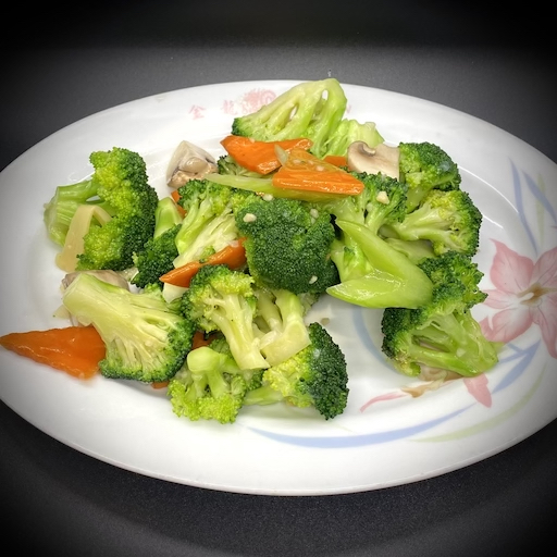 LOW FAT DISH. Sautéed mushrooms, bamboo shoots, water chestnuts, snow peas, carrots, broccoli, and black mushrooms  in a light sauce.
